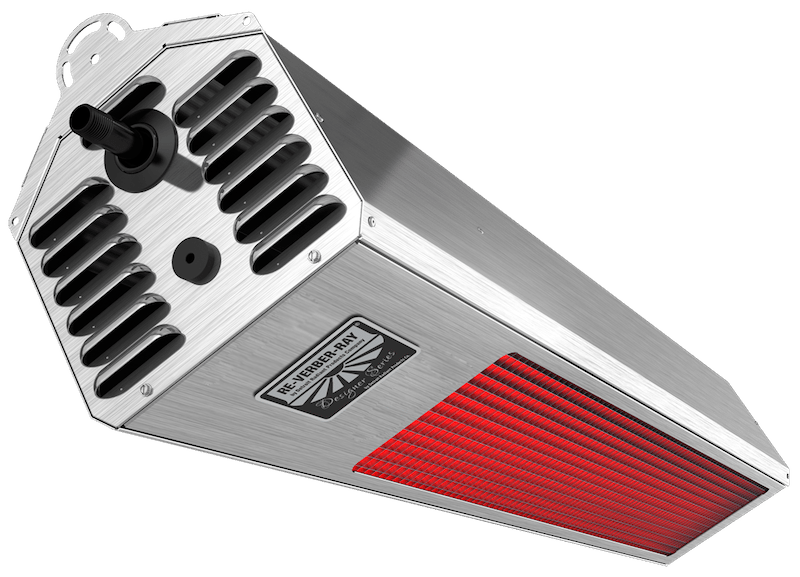 The suspended gas heater; model HE40 will heat the patio while leaving the floor free of obstruction.